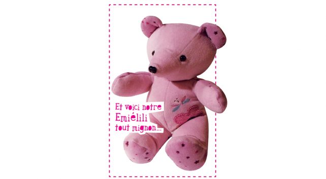 Je transforme les vêtements de bébé en ourson (taille 25 cm de haut) que j’accompagne d’un petit livret retraçant la vie antérieure de l’ourson : photos du vêtement avant transformation, photo de l’enfant… tous les éléments que vous aurez envie d’y faire figurer.